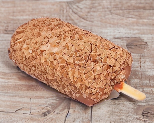 120g de paleta crema sabor vainilla, cubierta con chocolate y nuez.
