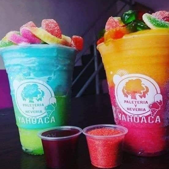 Nieve jalisco (solo 2 sabores por vaso) lleva chamoy, gomitas y miguelito