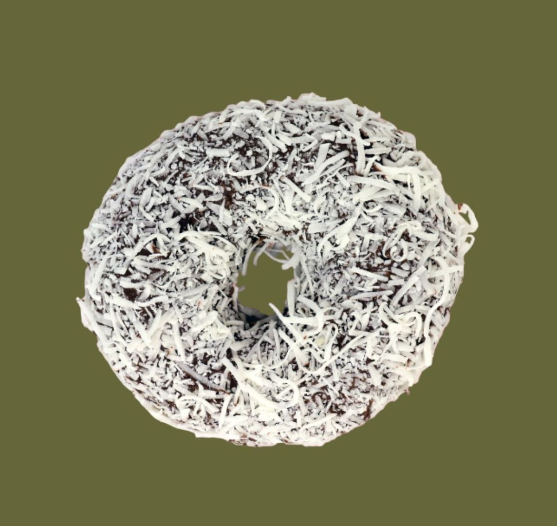 Gluten Free con harina deshidratada de papa orgánica, cobertura de cacao y coco.