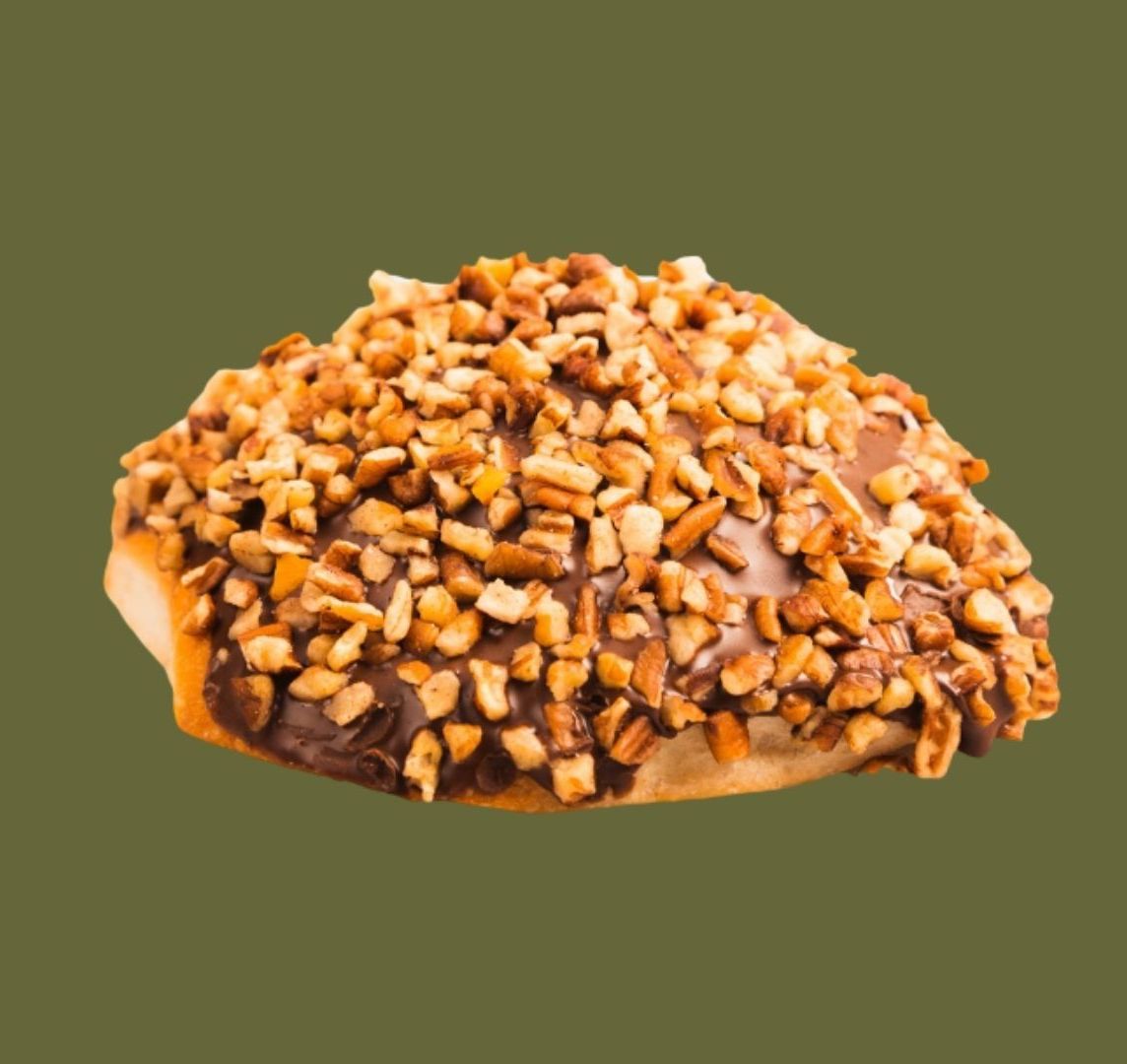 Gluten Free con harina deshidratada de papa orgánica, cobertura de cacao con nuez.