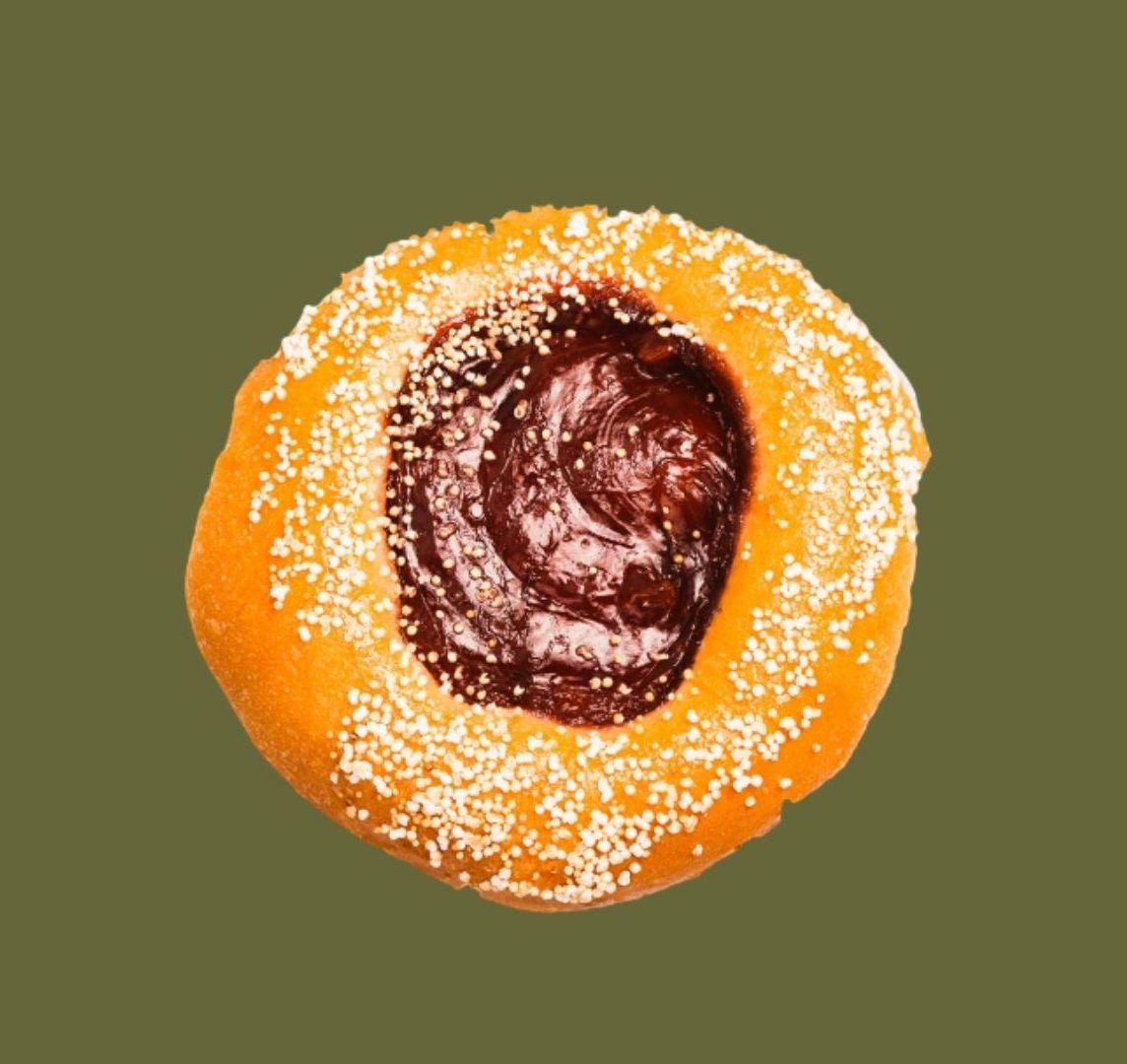 Gluten Free con harina deshidratada de papa orgánica, cobertura de cacao y crema pastelera.