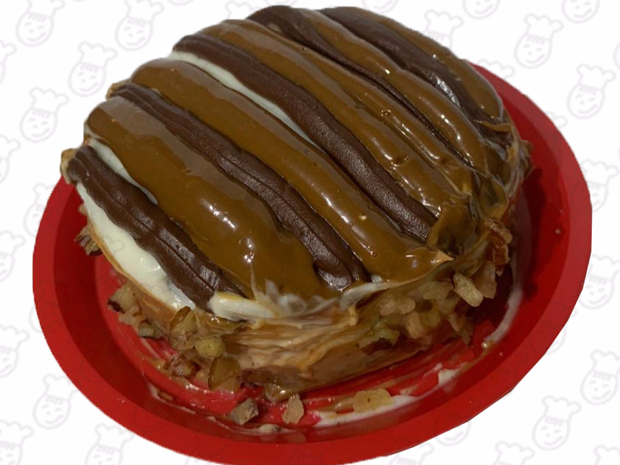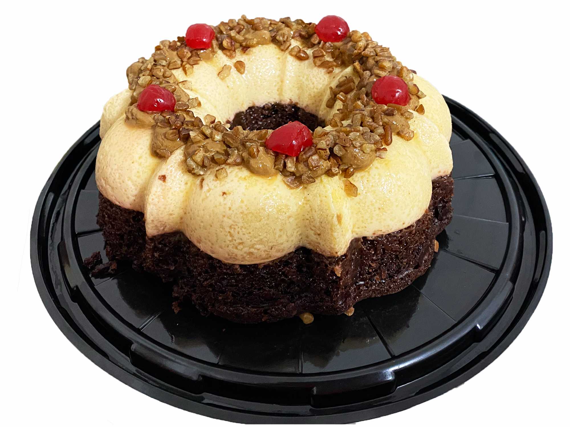 Pastel Chocolate con Flan y Queso / Crema Chantilly Cajeta, nuez y cajeta.