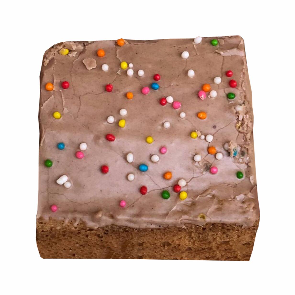 Pan de chocolate cubierto con betun de milky way y cajeta