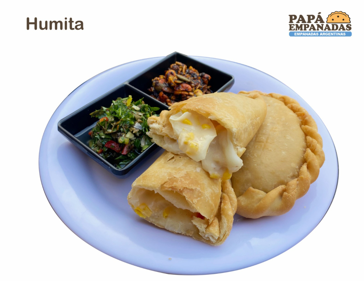 Empanada rellena de humita (maíz cremoso con queso mozzarella).