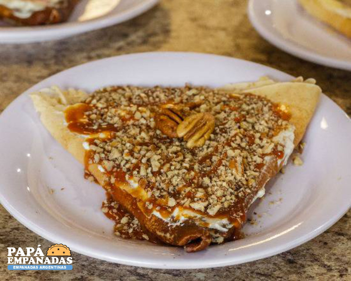 Crepa rellena (se infiere cajeta o dulce de leche).