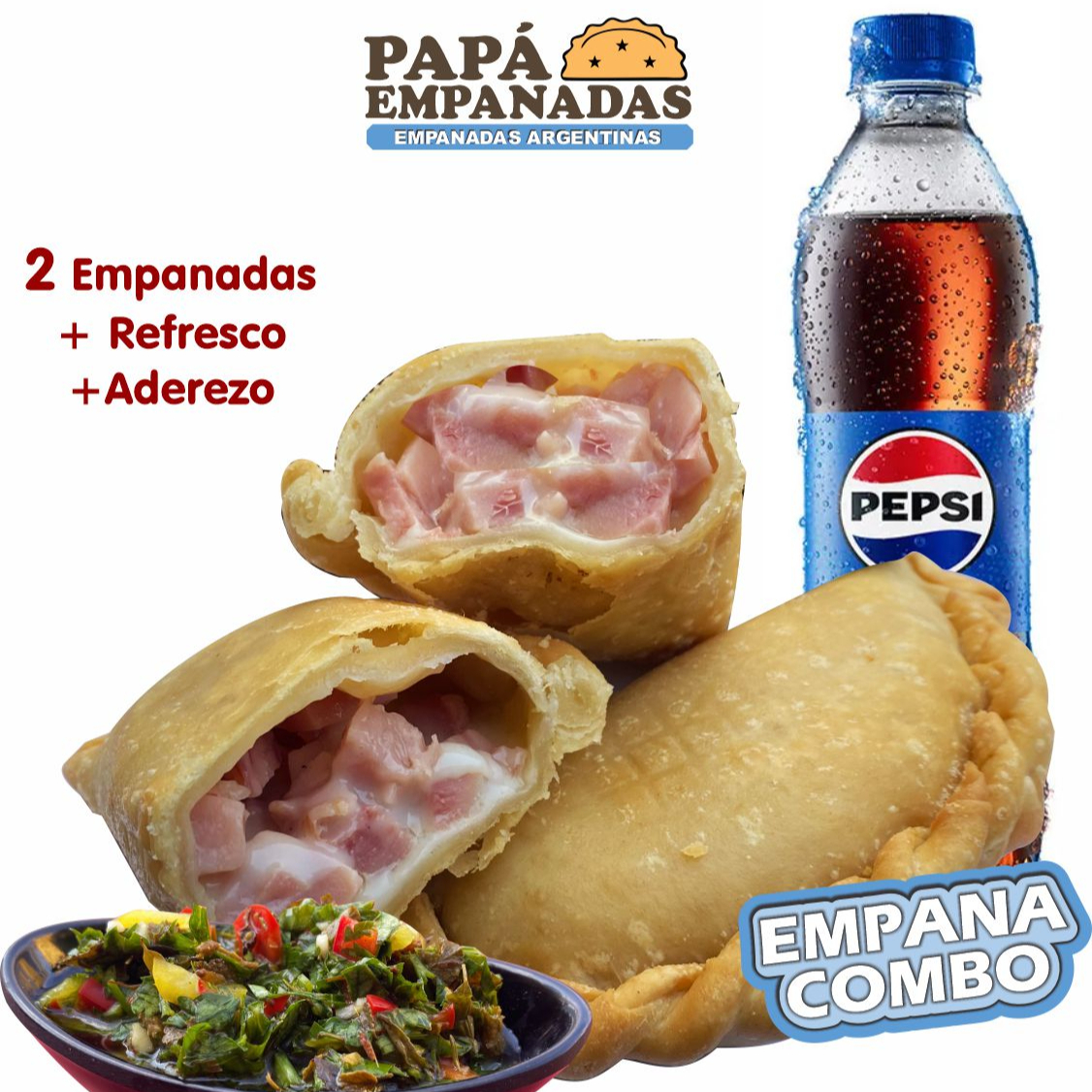 2 Empanadas, aderezo más refresco.