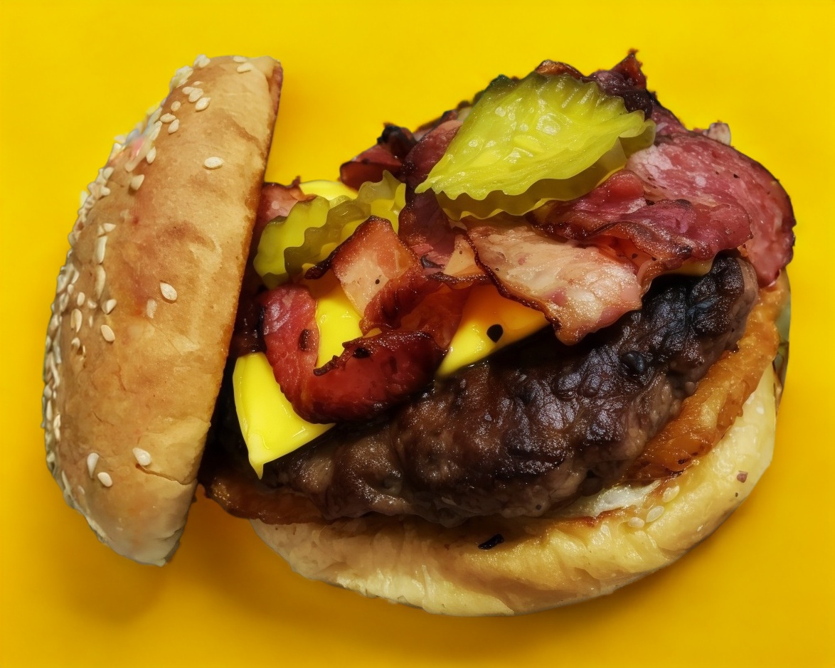 150gr de carne de res, tocino, queso amarillo, aros de cebolla bañados con salsa BBQ.