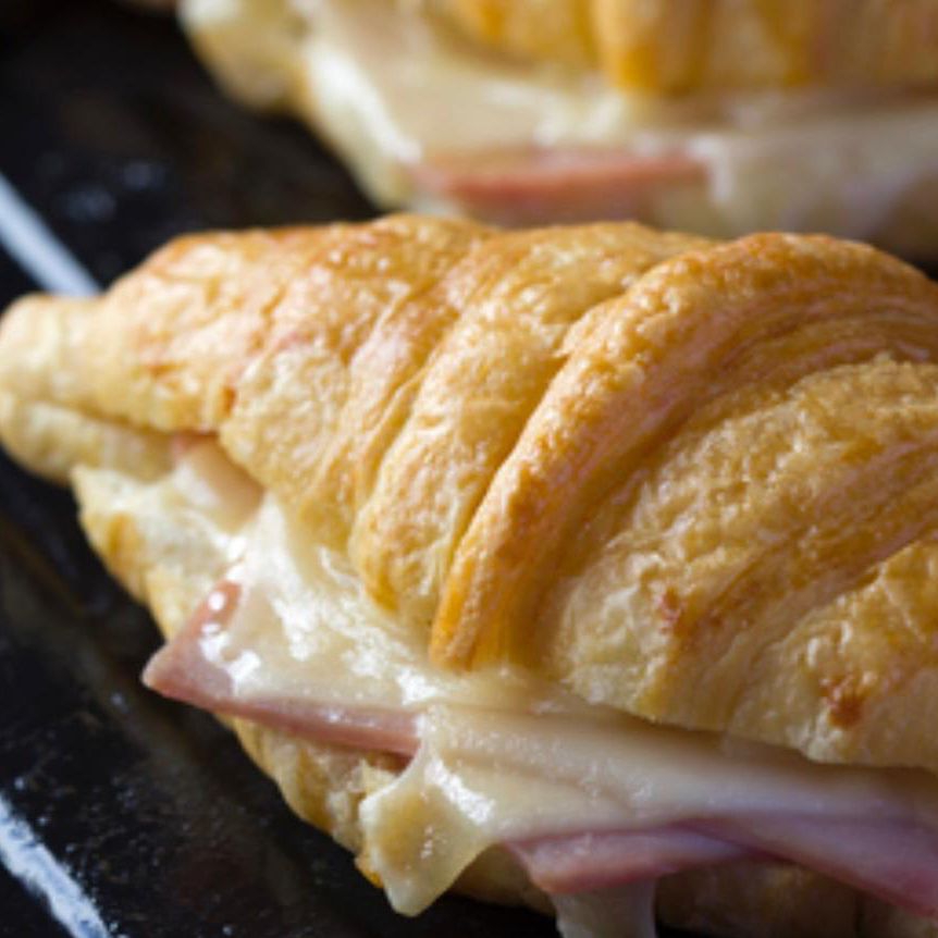 Crujiente croissant relleno de jamón.