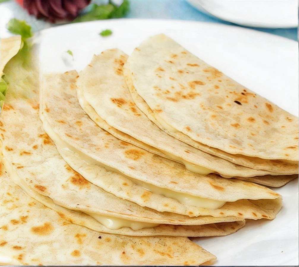 5 Piezas de quesadillas en queso chihuahua, en tortilla de maíz.