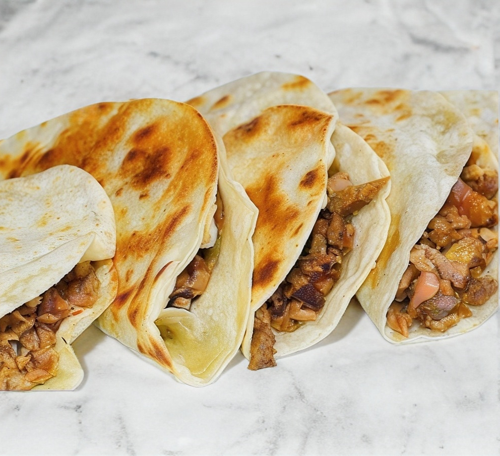 4 Piezas Sirloin (200gr), queso chihuahua, en tortilla de harina.