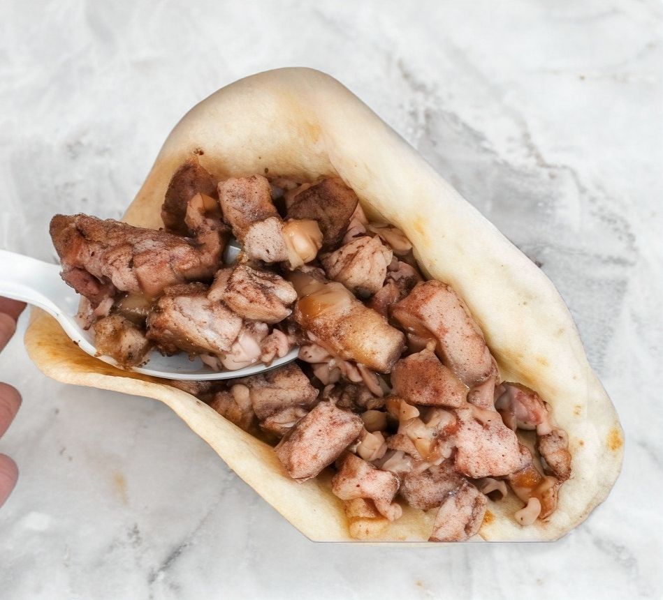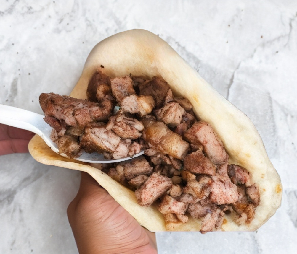 Sirloin (200gr), cebolla asada, en tortilla de maíz.