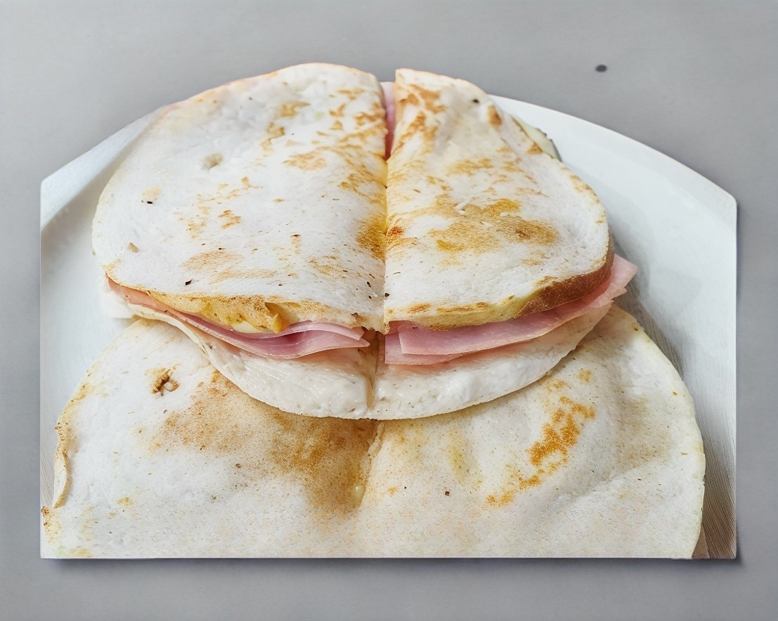 4 Piezas ,Jamón de pierna con queso chihuahua en tortilla de harina.