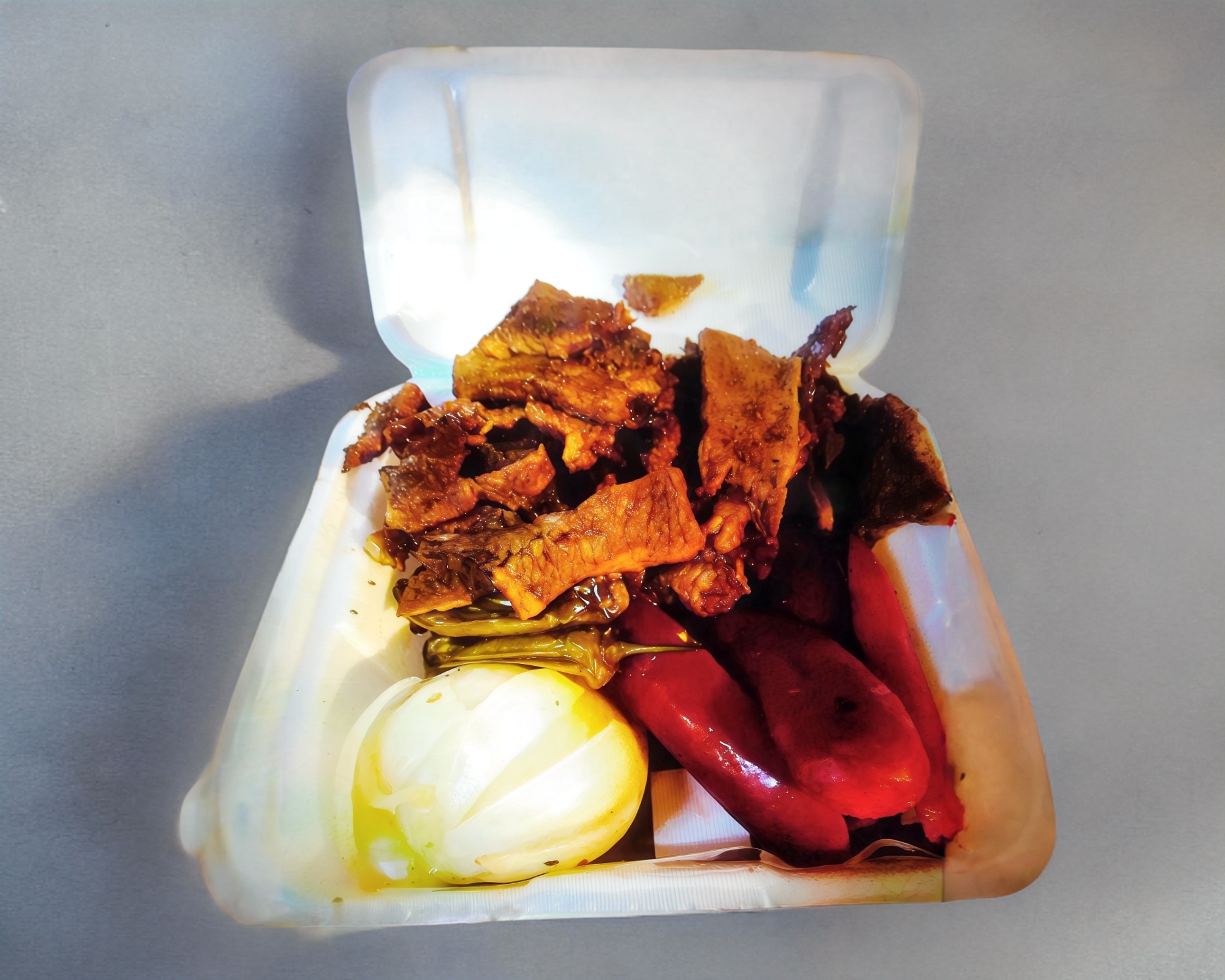 Medio kilo de top sirloin y medio kilo de Costillita simple , incluyen salchicha , cebolla ,chiles toreados , salsas , limones y tortillas