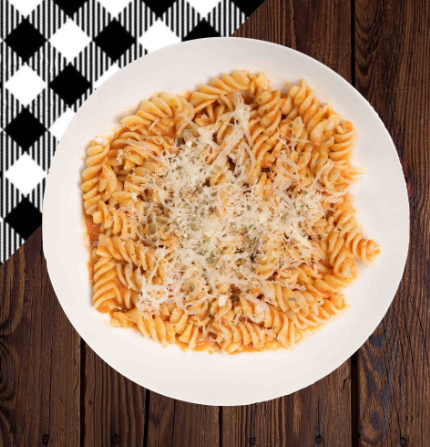 Pasta con salsa cremosa elaborada con una deliciosa combinación de 4 quesos y salsa de tomate.