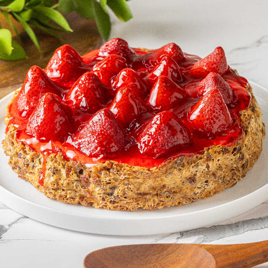 Base de galleta con nuez, pastel de queso, decorado con una base de ate de guayaba. (8 Rebanadas)