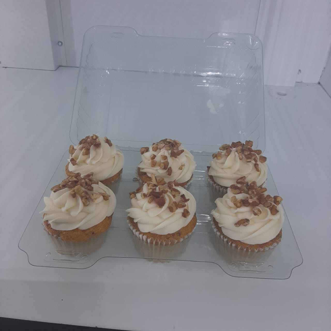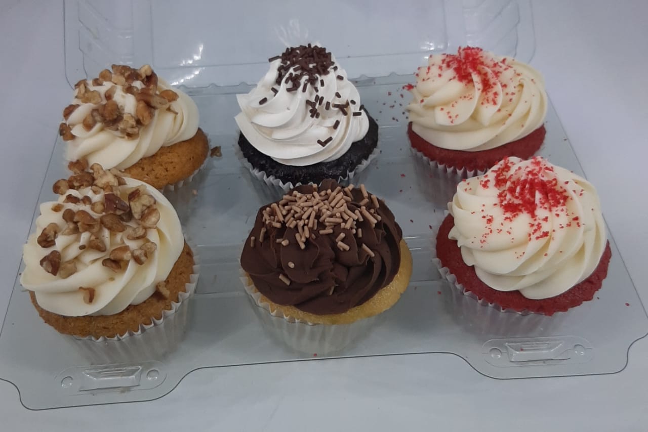 Caja con 6 Quequitos: Pan de zanahoria con nuez, decorado con betún de queso y nuez