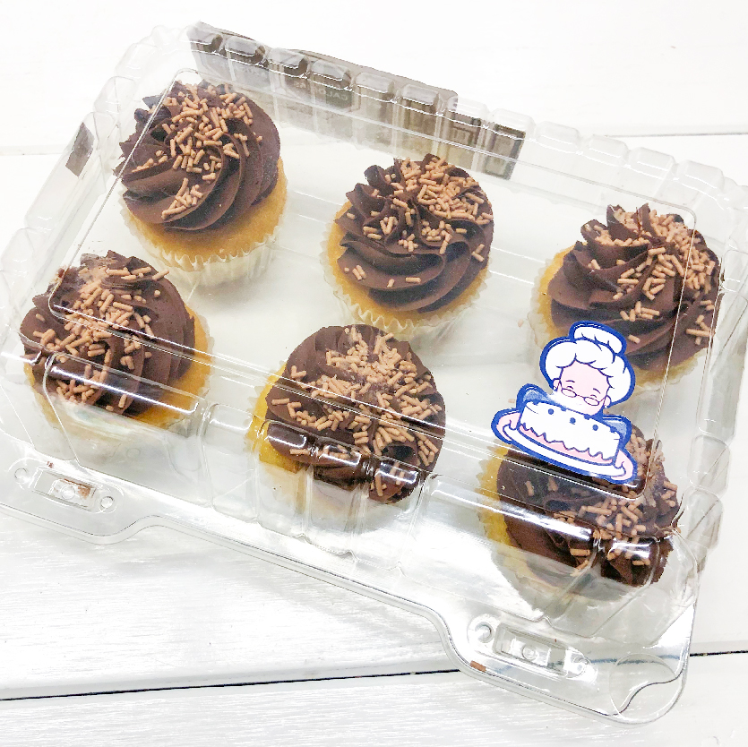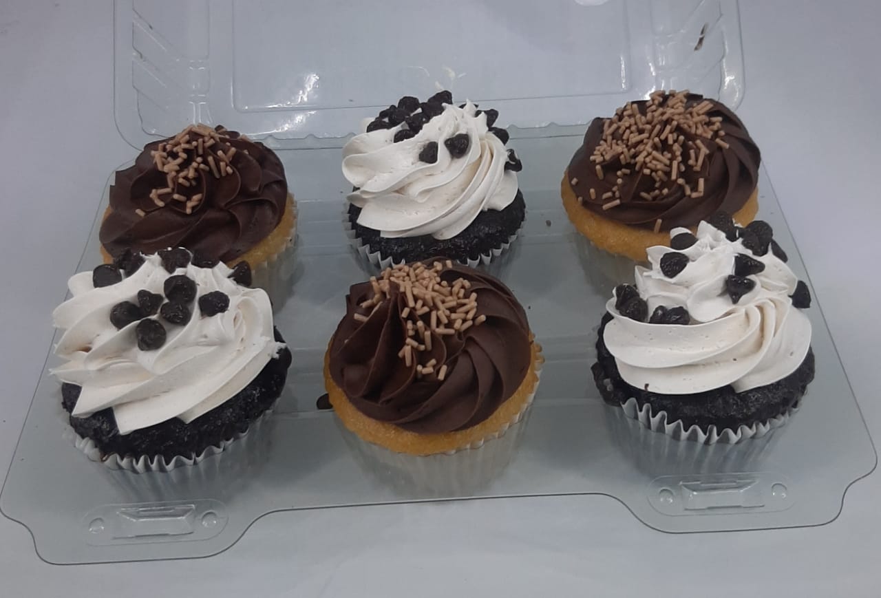Caja con 3 Quequitos con Pan Vainilla/Betún Chocolate y 3 Quequitos Pan Chocolate/Betún Vainilla