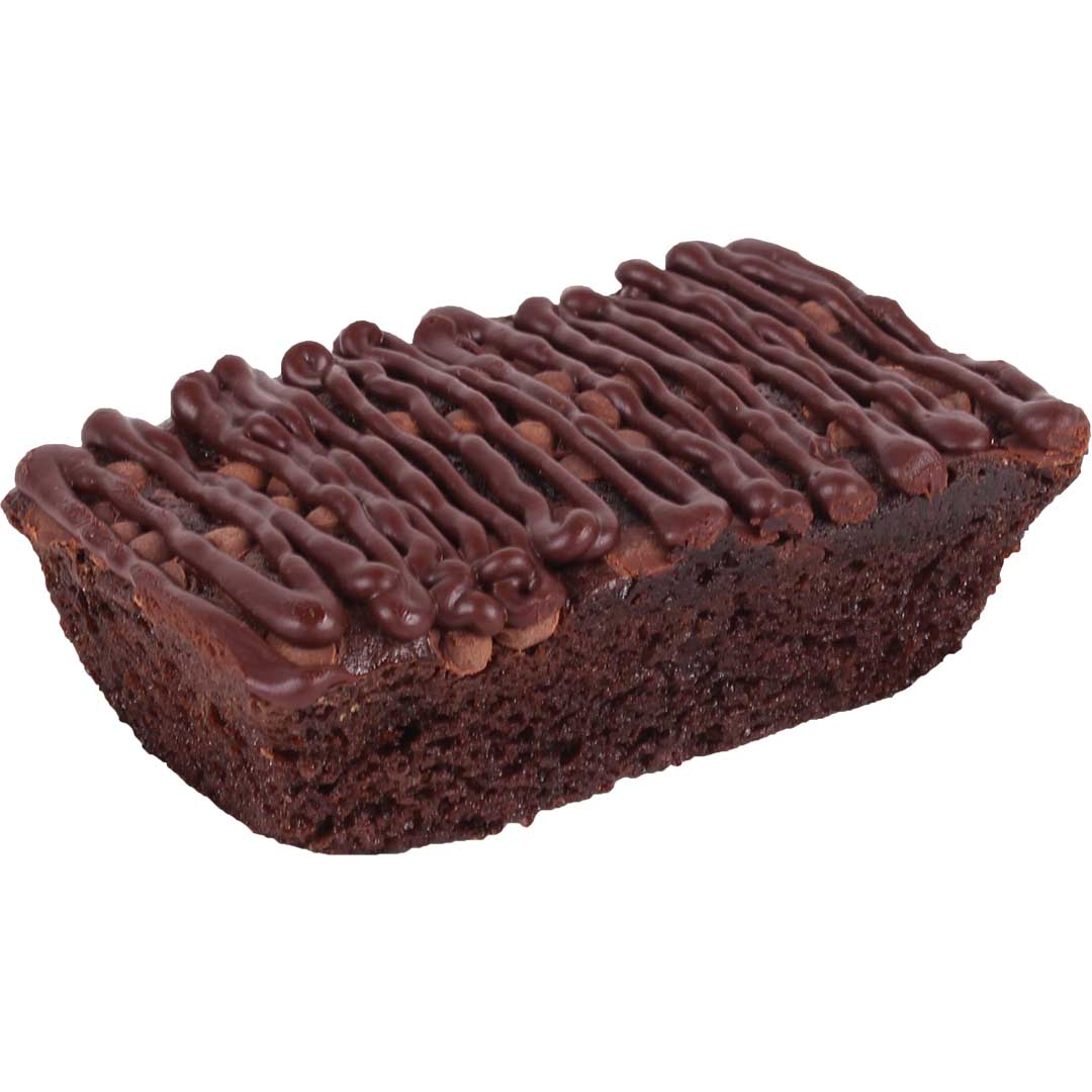 Pan sabor chocolate, relleno y cubierto con ganashe de chocolate y betún de queso.