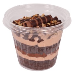Combinación nieve y pan de chocolate con una mezcla de crema, cobertura, cajeta, MilkyWay® y nuez.