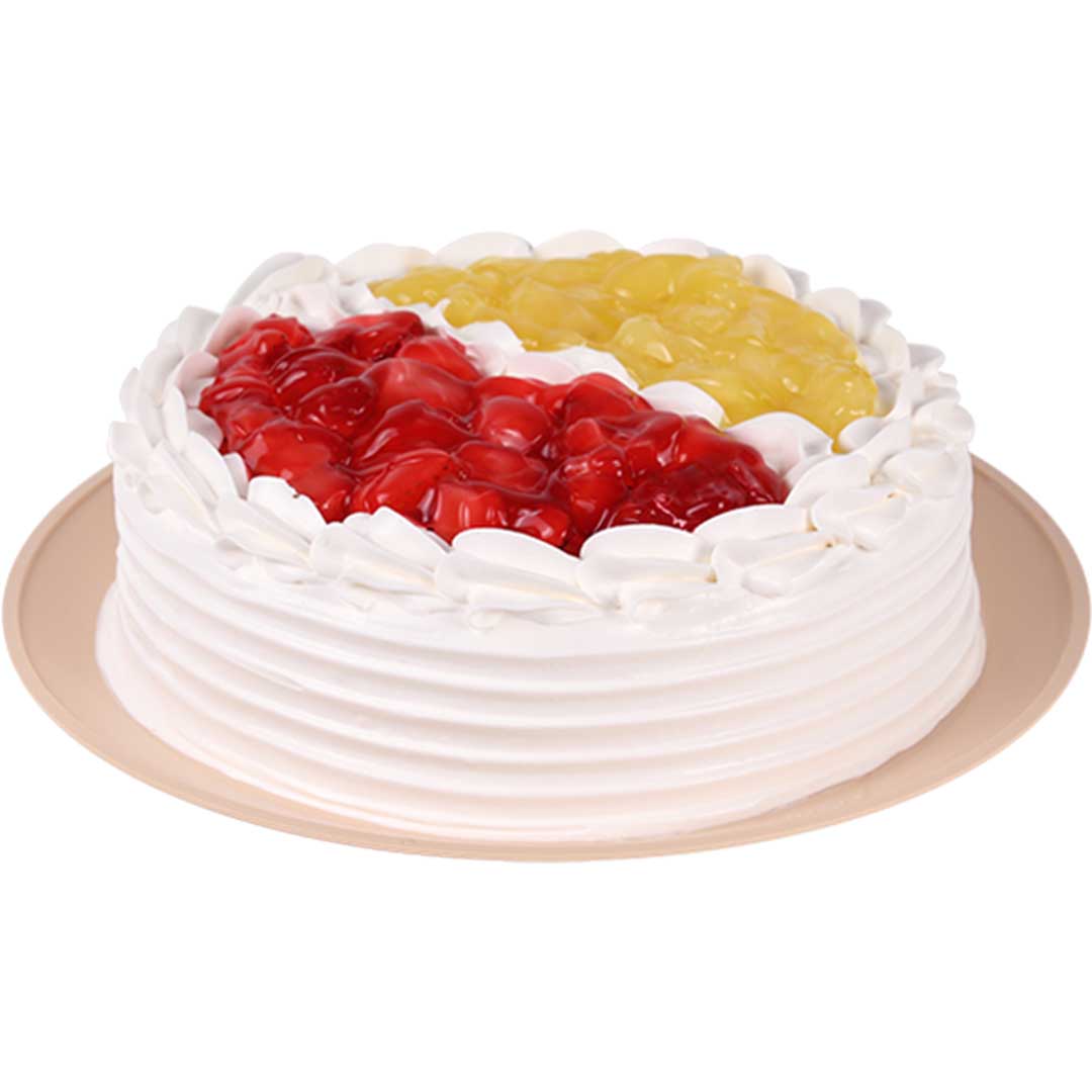 Pastel 3 Leches de vainilla, enriquecido con crema nata, frescas fresas y jugosa piña. Una combinación perfecta que deleitará tus sentidos en cada rebanada.