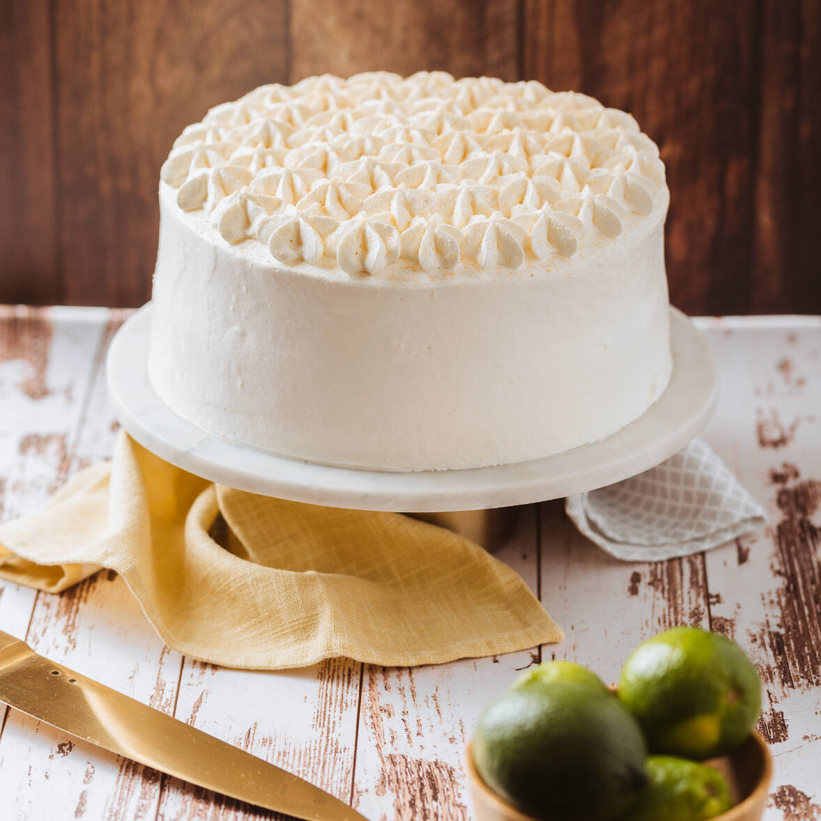 Pan de vainilla relleno de betún queso crema con sabor a limón. Mediano (Rinde de 12 a 14 rebanadas).