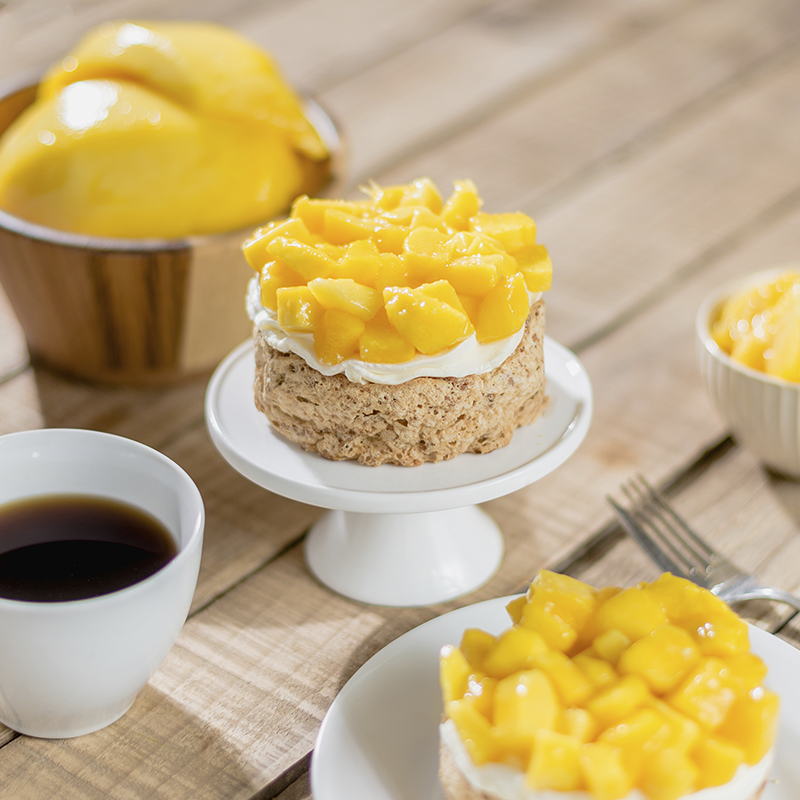 Riquísima combinación de merengue, galleta y nuez, cubierto con exquisito betún queso crema y mango.