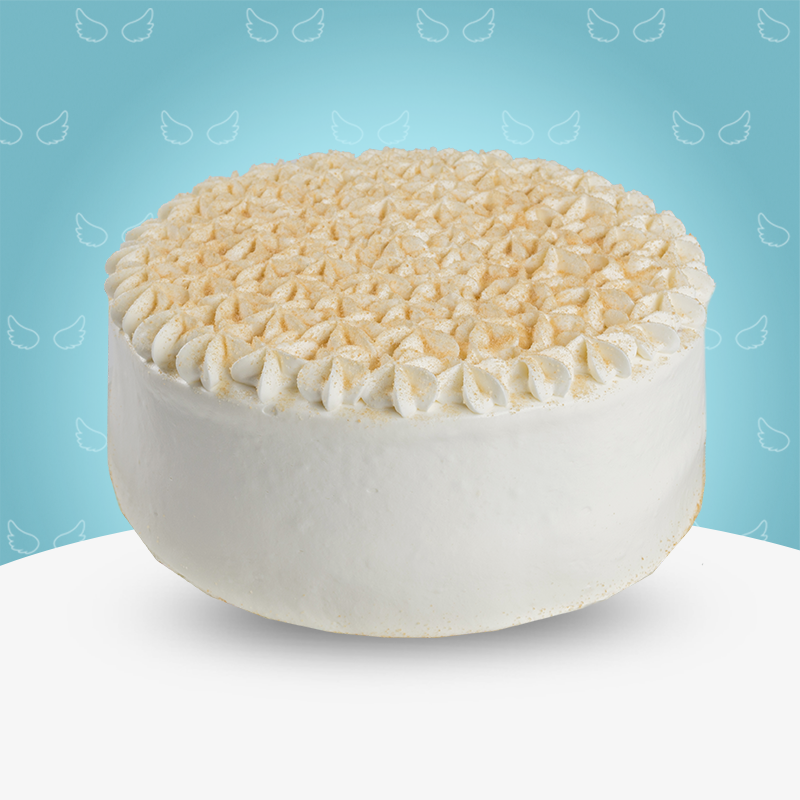 Suave pan vainilla sabor a coco. Cubierto y relleno con cremoso betun de queso y coco natural rallado... como toque final: un rico Raffaello Ferrero Rocher en el centro. Mediano (Rinde de 12 a 14 Rebanadas)