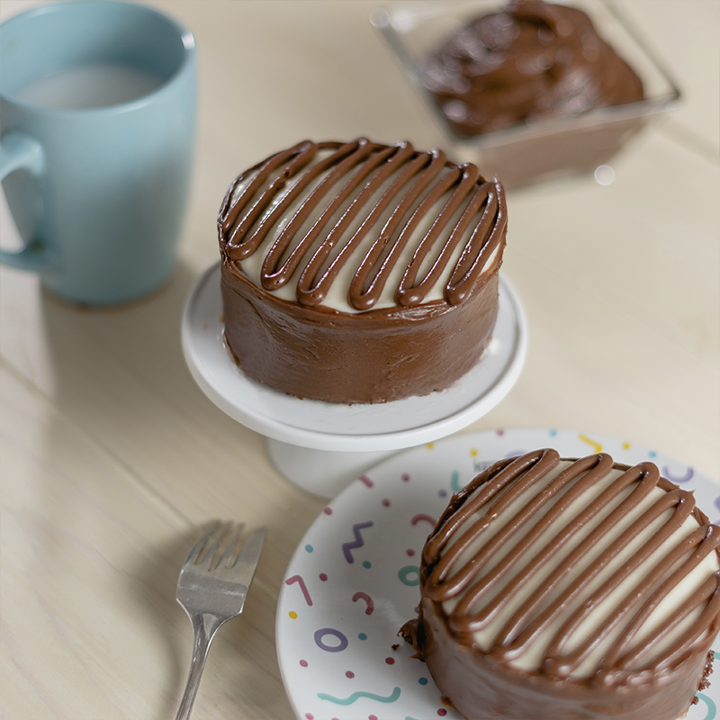 Pan de chocolate cubierto con queso crema, envuelto y decorado con el sabor original del chocolate milky way. Mediano (Rinde de 12 a 15 rebanadas)