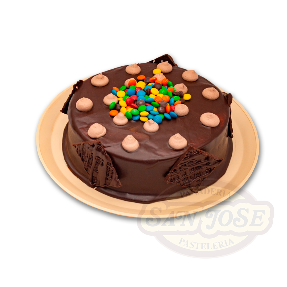 Pan: ChocolateRelleno: Mermelada de fresa con NuezCubierta: Cremaquilla de Chocolate, Decorado con Ganash, Chocochispas, Nuez, Cajeta, Cereza y Pin de ChocolateDisponible en: 20 personas.