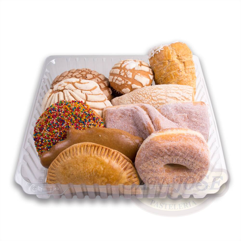Pan: chocolate y vainilla mojado en jarabe 3 leches, relleno: mermelada piña y durazno con cremosa, cubierta: cremosa con fresa, piña, durazno y cereza, disponible para 20 personas.