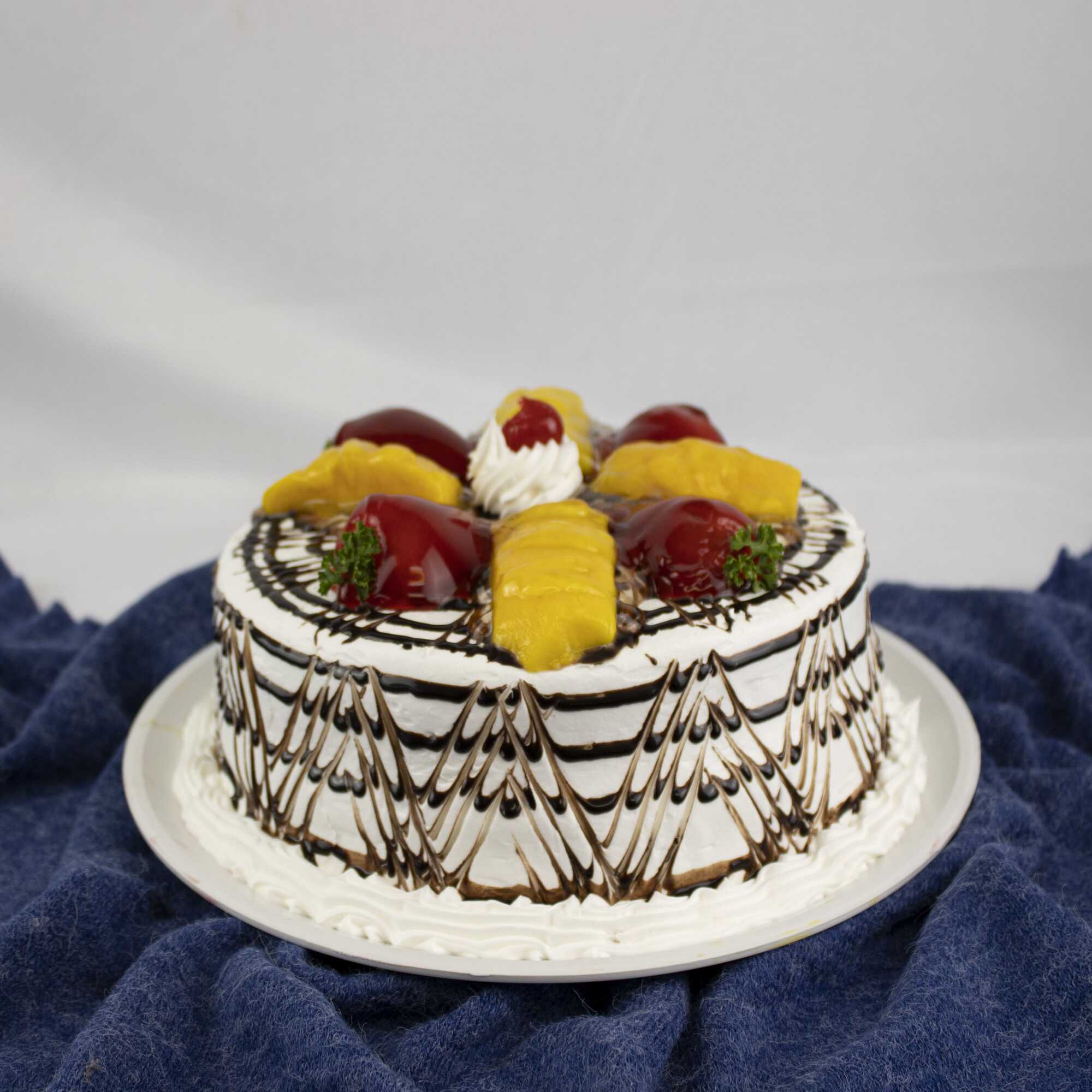 Pan vainilla humectado en 3 leches, cubierto y relleno de chantilly y betún de queso crema, ganache y trozos de fresa y mango. (No se agregan desechables o cubiertos).