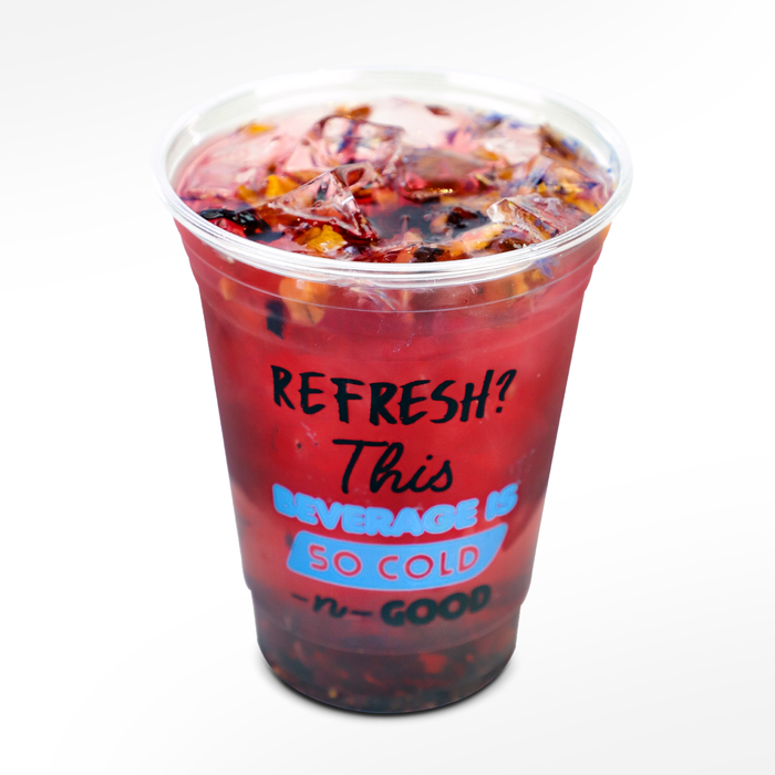 Pasa de corinto, flor de jamaica, pasa sultana, rosa mosqueta, betabel, manzana, fresa y notas a zarzamora y frambuesas