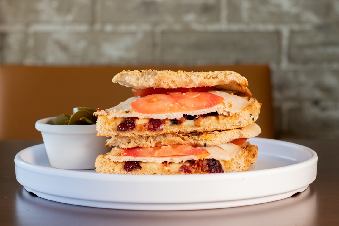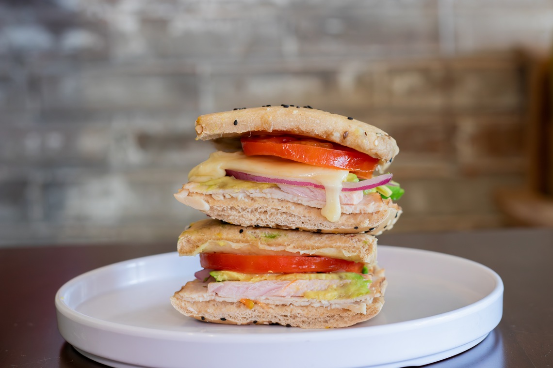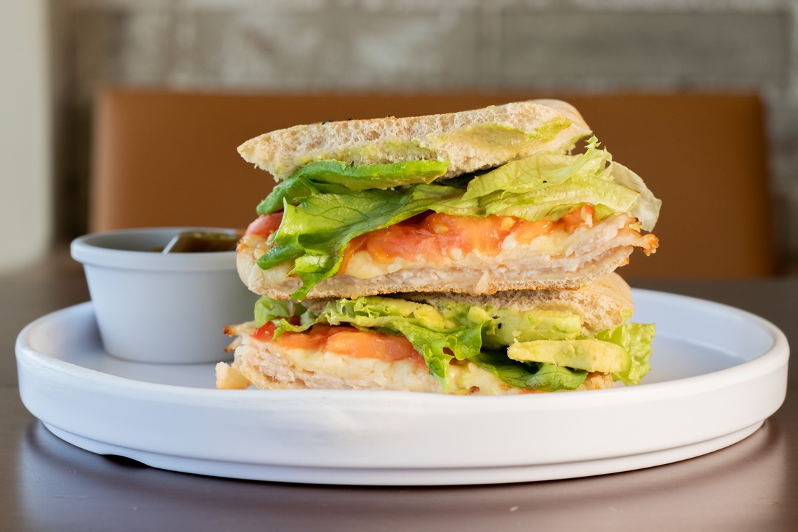 Pechuga de pavo, manchego, arándanos, nuez, aguacate, jitomate y tocino.