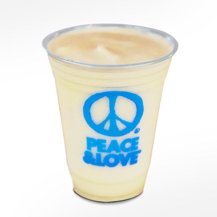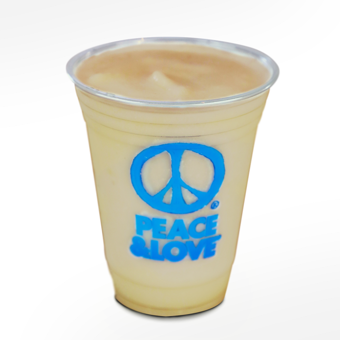 Proteína, crema de cacahuate, cacao y plátano. Elaborado con leche de almendra (470 ml o 946 ml)