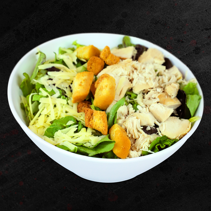 Pechuga de pollo horneada, parmesano, croutones y aderezo césar.