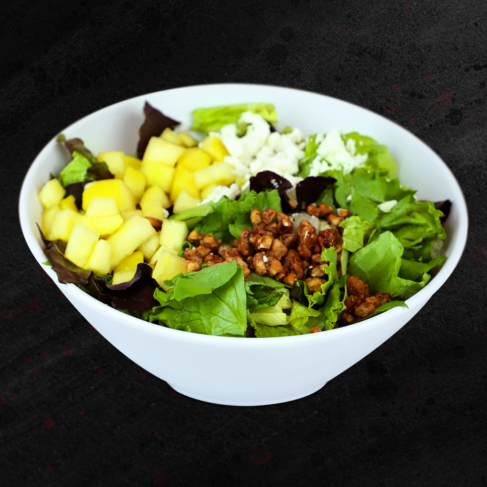 Queso de cabra, manzana, nuez caramelizada y aderezo de champagne.