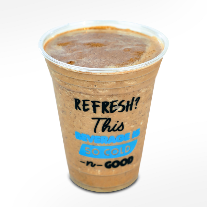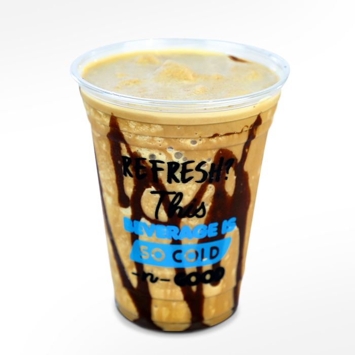 Shots de espresso endulzados, leche y cremoso hielo frappé