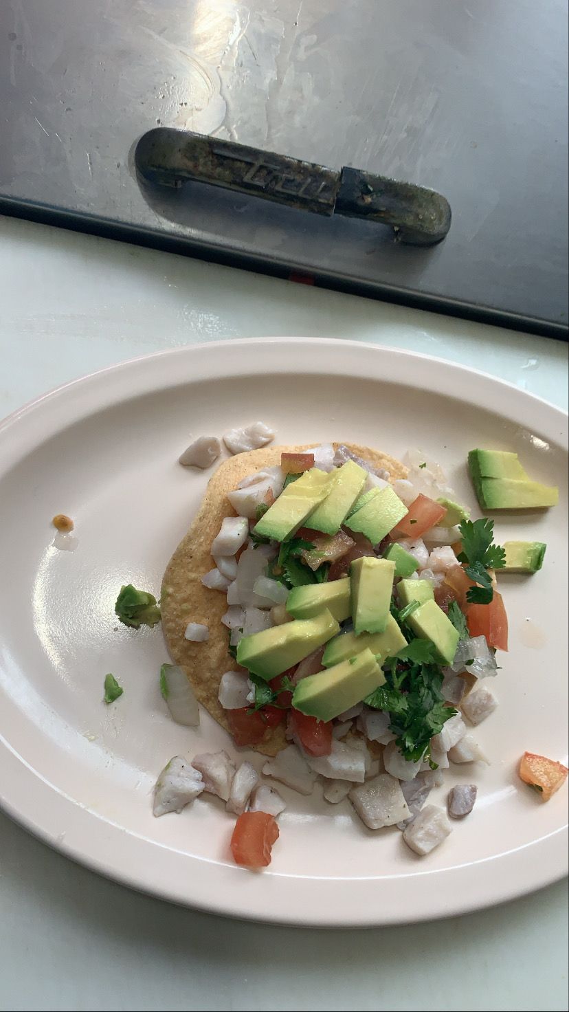 1/2 LITRO DE CEVICHE (300g de cebiche y 200 g de pico de gallo)1/2 AGUACATE , ACOMPAÑADO CON 5 TOSTADAS TOTOPOZ ADEREZO GALLETAS LIMONES Y SALSA