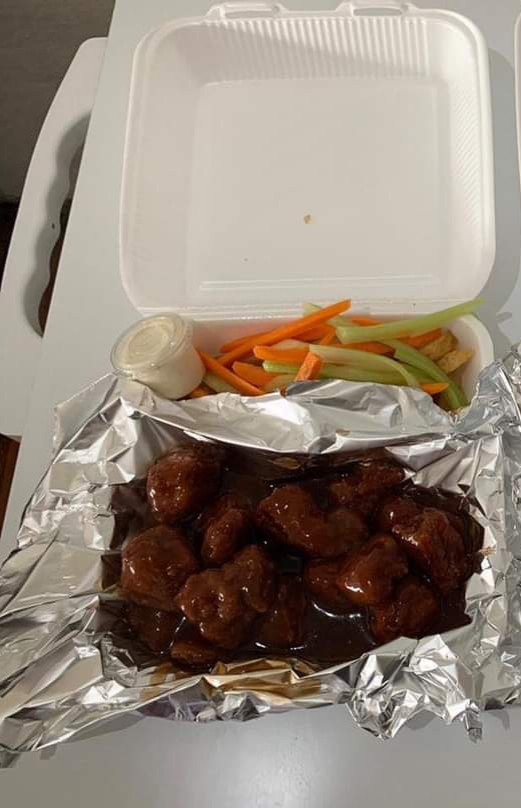 5pz de pechuga de buen tamaño bañadas en salsa bbq, acopañado de papas aderezo salsa y limones