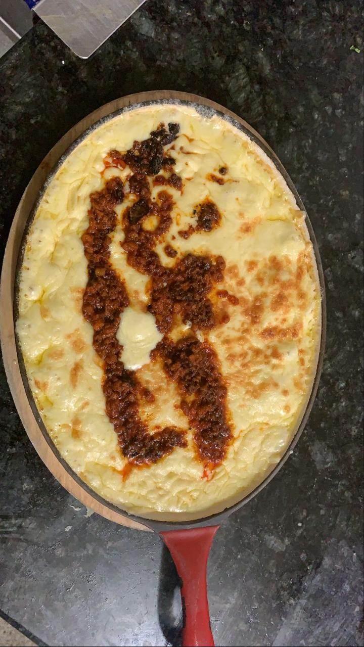rico guiso de carne, camaron y pulpo en tortilla de harina con queso oaxaca acompañado de ensalada papas, chile toreado, salsas y totopos