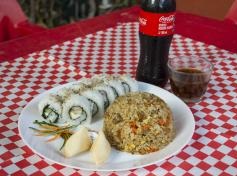 Rollo Tipo California de Surimi*1 + Porcion de Arroz Frito con Pollo, Carne y Verduras*1 + Galleta de la suerte*1