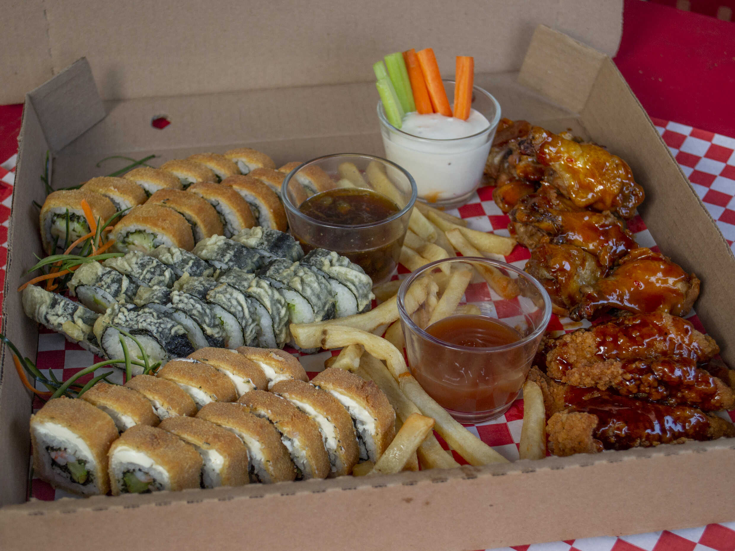 Rollo Tipo California de Surimi*1 + Porción de arroz frito con pollo, carne y verduras*1 + Galleta de la Fortuna*1