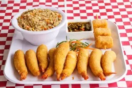 3 Rollos Empanizados de Camaron*1 + 200 gr de boneless*1 + 1 Hamburguesa*1 + 400 gr de Papas Fritas*1