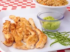 180 gr de fajitas de pollo capeadas con guarnición de arroz yakimeshi.