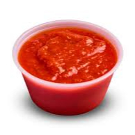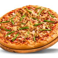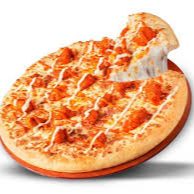Pizza Grande con trocitos de Boneless Bañados en Salsa Búfalo , Base de Salsa Búfalo y Decorado con Aderezo Ranch y Búfalo