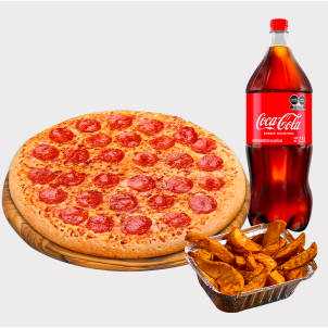 1 pizza Grande de Pepperoni , Papas Gajo y un Refresco Familiar