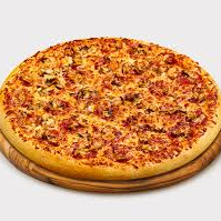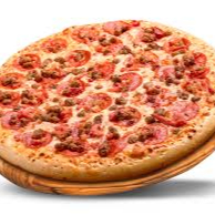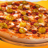 Pizza grande de Pepperoni , Salchicha Italiana, Jamón, Pimiento Verde, Chorizo ,Champiñones. Cebolla y Aceitunas