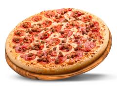 Pizza grande con más pepperoni y más Quezzito del Bueno.