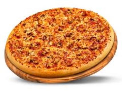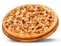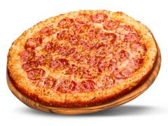 Pizza grande de chorizo con carne molida, cebolla y jalapeños.