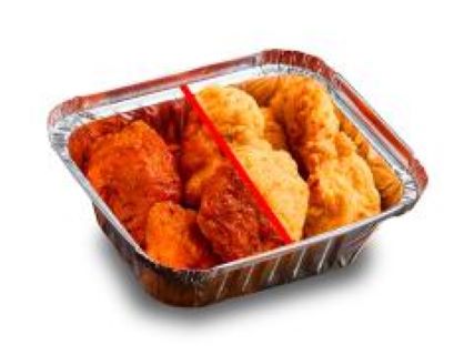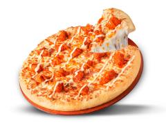 Pizza grande con trozos de pechuga empanizada bañadas en salsa búfalo y ranchb